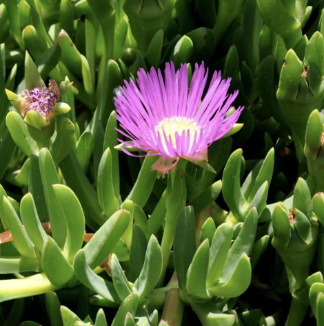 Karkalla is an Australian Native ground cover plant, with fleshy leaves and pink daisy like flowers. Commonly known as Beach Banana or Round Leaf Pig Face, it is a succulent and has a distinct salty taste.