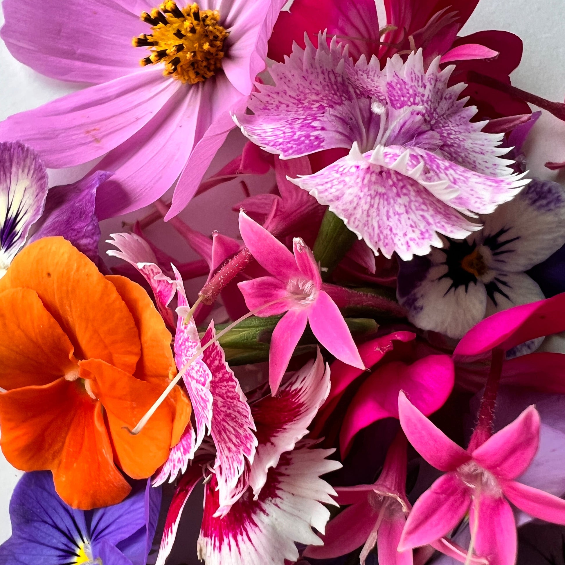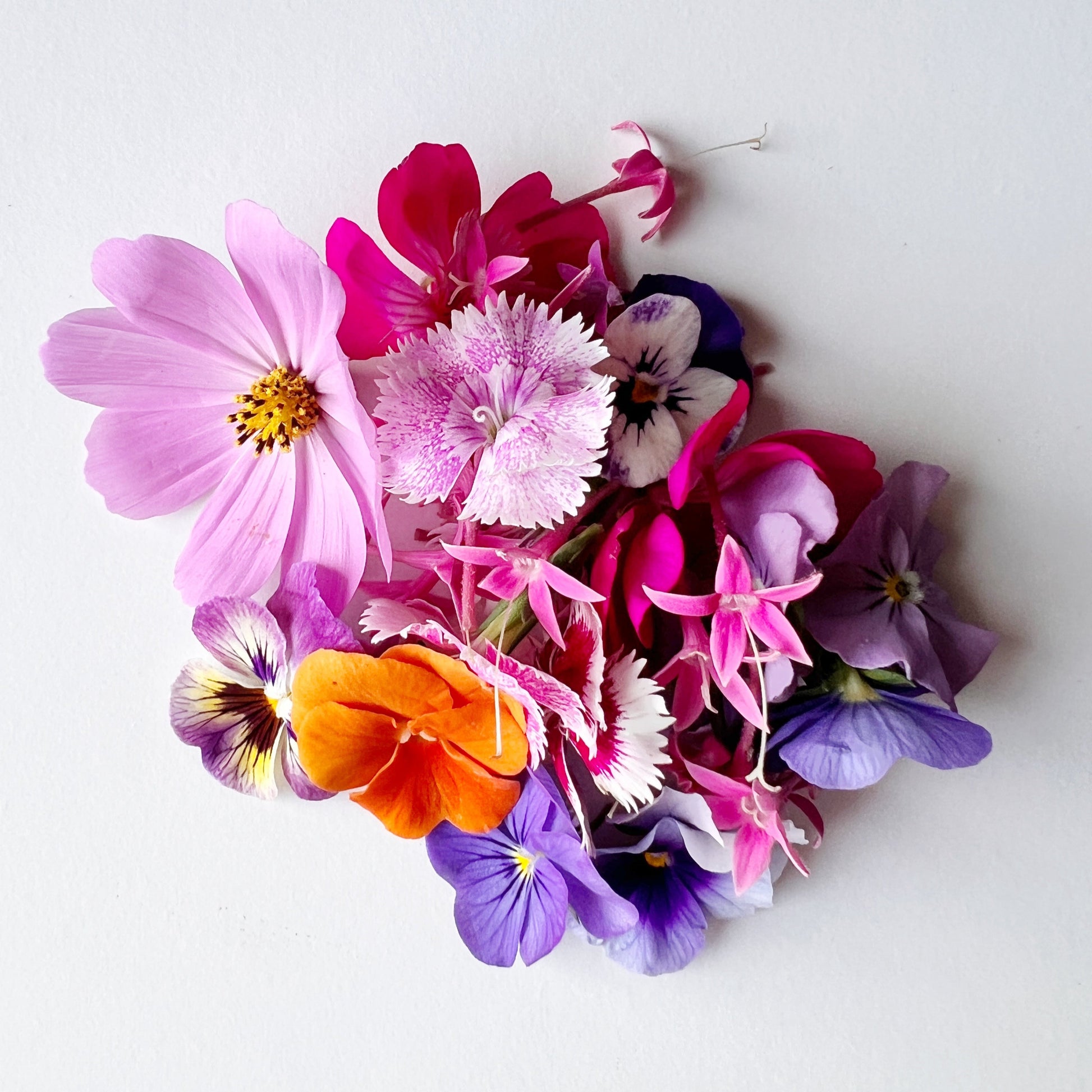 Seasonal Edible Flowers - hand picked each week to showcase the range of flowers available seasonally. Most are sweet, some are slightly savoury.